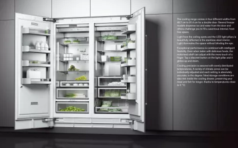 Gaggenau嘉格纳提供了极其理想的冰箱产品,尖端科技实现冰箱“小气候”微控,这让人难以置信:食物在冰箱里可以获得更长时间的保鲜,精细的食物可以在最适合的温度条件下保鲜,还有蔬菜、奶酪、酒等,一切食物都能因材而宜,享受由始至终的美味!