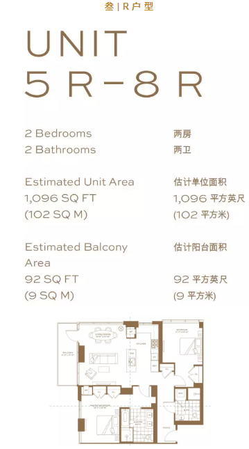 R户型是一套西北朝向的户型,面向曼哈顿及中庭花园。宁静雅致,自住首选。